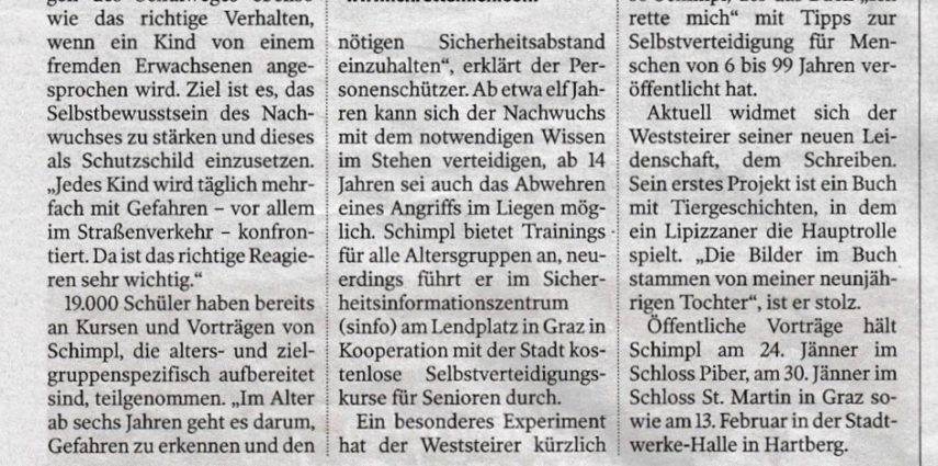 19.000 steirische Schüler haben bereits an Kursen und Vorträgen von Markus Schimpl zum Thema Selbstbehauptung teilgenommen. Nun schult er auch Senioren und sehbehinderte Menschen….